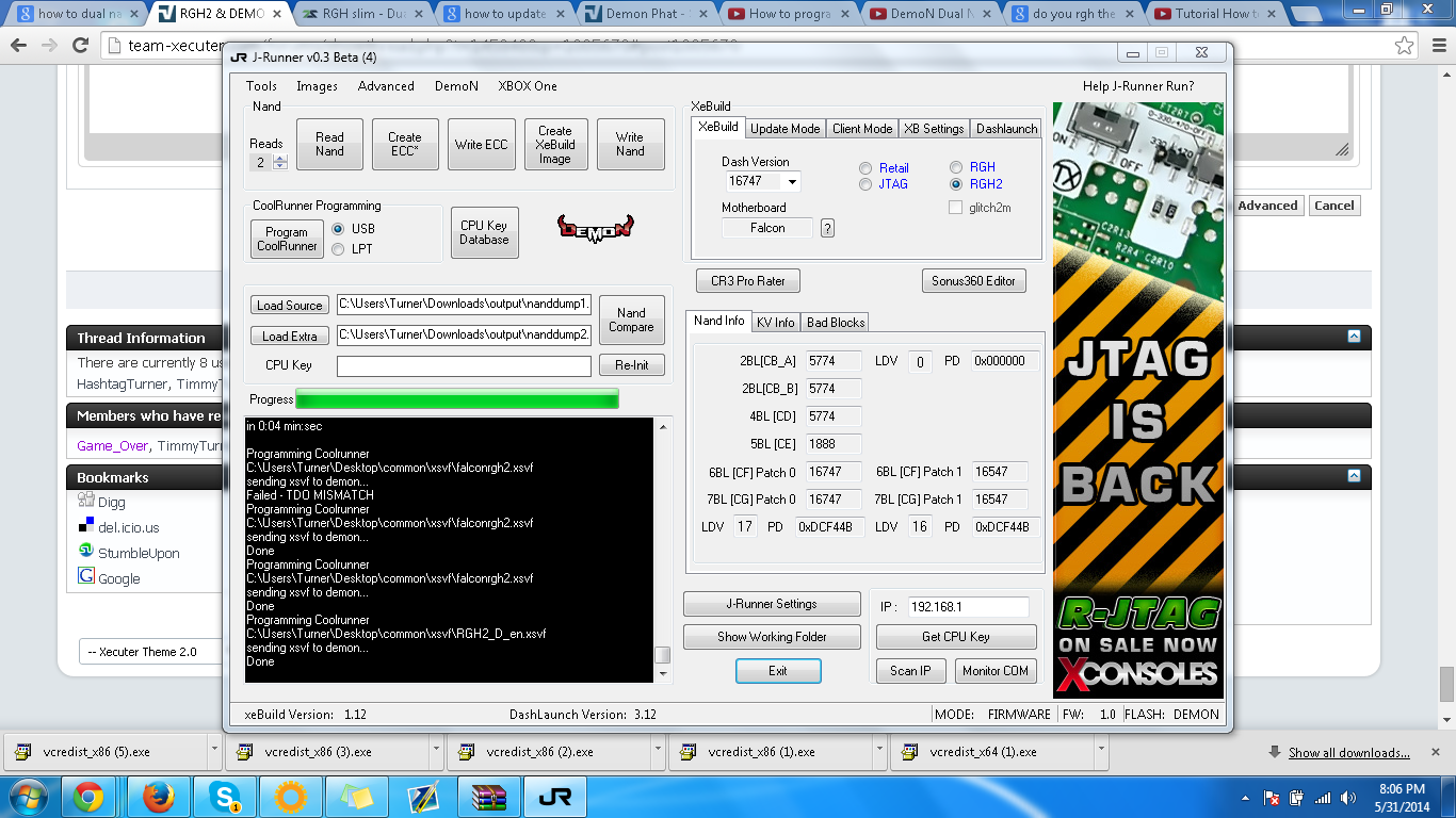 Ok so today was the day I brought out the old demon and decided to install it to my retail along with a cool runner rev c. The dashboard is on latest 16747 and I went ahead and took it apart and watched a tut on how to do it. I first got my nand x and read the nand before anything and it was fine. I checked my demon chip to see if it worked and it did so I switched the toggle switch back to xbox360 and soldered it and the wires in place. I flipped it over and installed the cool runner in the rgh2 format. After all of that I put it back together an plugged the power in and connected the micro usb to the front port to my computer and read it on J-runner. I get this error :