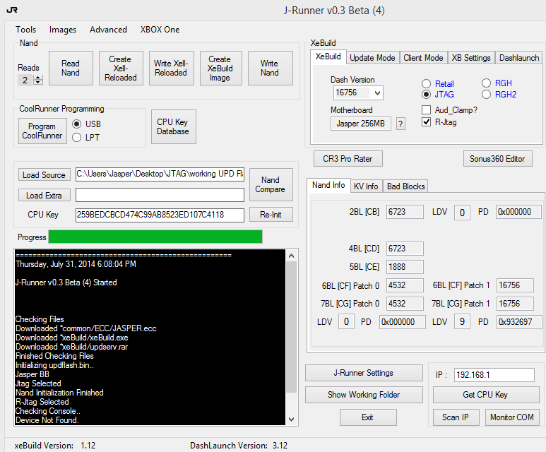 Screenshot of NAND details from J-Runner: