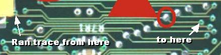 Had another boned mod install brought to me for attempted recovery. The person doing the pin header install totally hosed the underside D0 pad in the middle of the trace, no continuity between the two end points. The pad was now just a small black hole. I first worked at reconstructing this trace with a wire from the two end points-