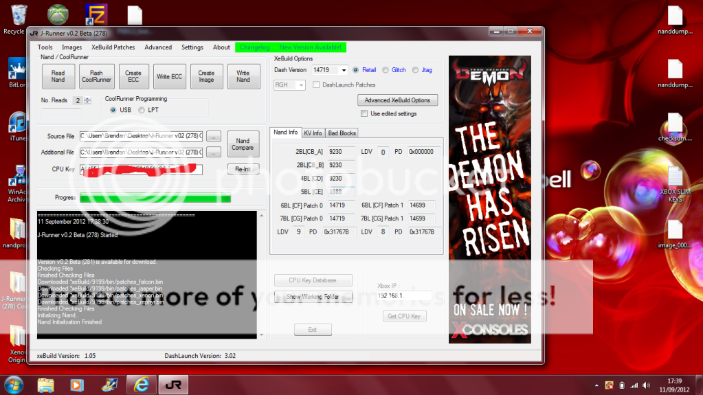 hey guys, i have just finished installing cr revc and demon. i have put glitched image on demon nand, and all is fine, quick boots etc. boot when i try to boot retail nand i get nothing. i have noticed that there are 2 different ldv loaded. 8 and 9 ??? could it be as simple as that? change the 8 to a 9?