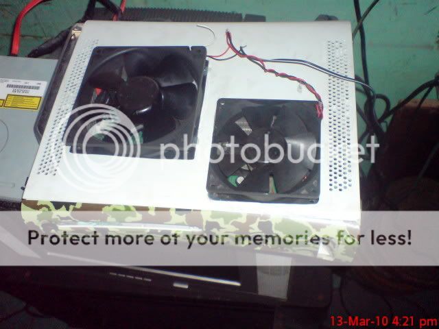 U could have gotten the same result if u wld have used the 120mm fan and plced it in between the gpu adn cpu heatsink. 2 of them is wayy too much !!