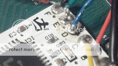 Ok you are hanging by a thread, that D pad is going to break off, this is against my rules but make sure that pad is in place and use some hot glue on it to hold it there, don't try and solder it, it may fall apart, Just the hot glue on it and a bit around it so it won't move. Also you need to work on your soldering, pads will lift if they have gotten to hot it breaks them loose from the board and keep all your wires going the same way, not crossing over each other and keep the exposed part of your short like .2 cm as it heats up it will end up longer as the heat will melt it back a bit. So how did you cut the Blue wire?