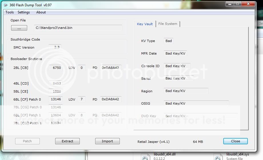 nandpro nand64.bin: -r64 smc.bin 0 1