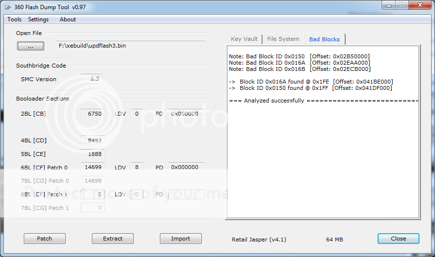 I also noticed in the logs, even though 360 flash tool didn't see bad blocks on the nand that I initially read myself, the log from xebuild showed it trying to remap the three bad blocks. Of course, it was trying to remap 0x16A to 016B, which is also a bad block. I'm not sure why it was trying to remap a bad block to another bad block.