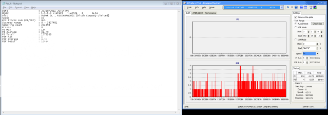 sorry cant realy see img, so here is a copy of the logOk here is my test using aone+ gold discs burned @ 2.4x img burn verified 100% and here is the kprobe log