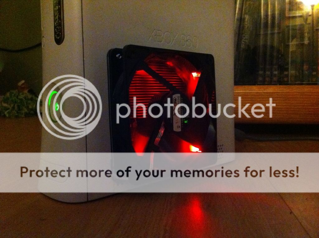 Hey guys so today, I took my old 360 out bought a new laser and rubber band. I installed it and decided hey i always wanted to put a fan directly over the heat sinks so i did, I had a 120mm cooler master red LED fan, and sodered it to the 12v source under the board below the power supply connector. then cut the hole and screwed it on. It now works like new and is my brothers now.