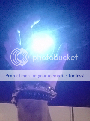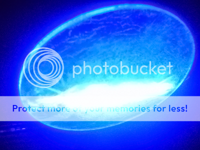 Added some blue LEDs to the RF module then 4 ultra-bright High Intensity LEDs behind the jewel wired up to the dvd drives 12v+ power source.