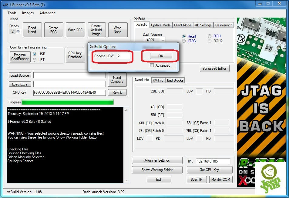 - In J-Runner, copy and paste this cpu key F37C0CD50B928F4E67614ACD548A4E49 in the cpu key section.
