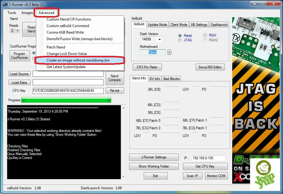 - In J-Runner under the Advanced tab click on Create an image without nanddump.bin