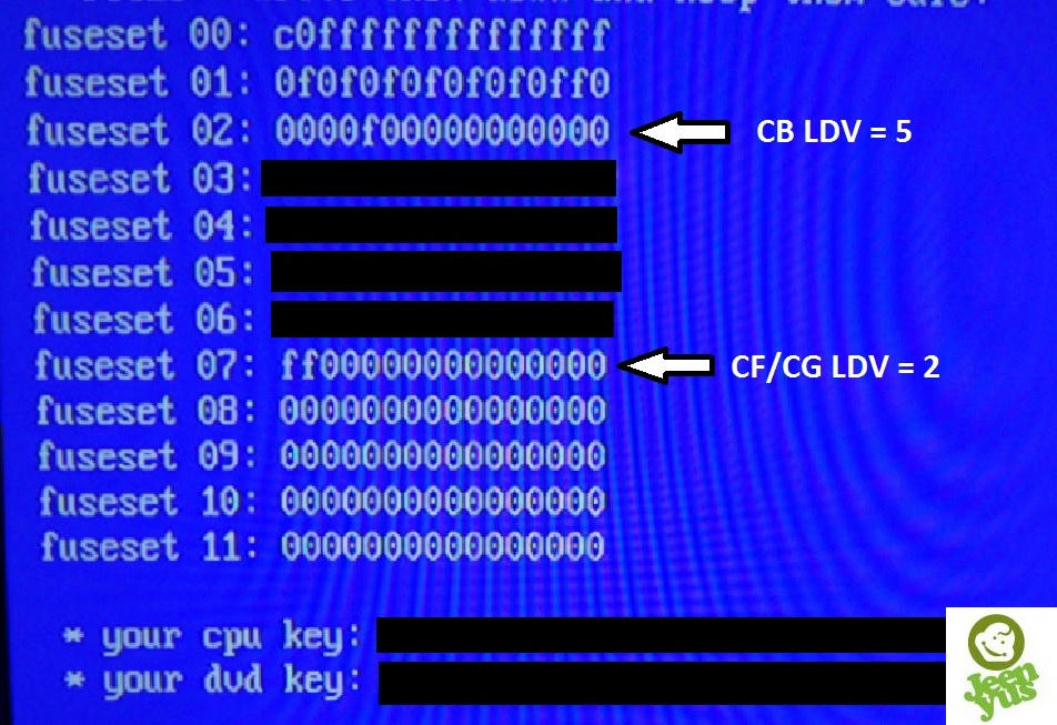 - Once xell has booted, write down your cpu key, fuseset 02 and fuseset 07, 08, 09, 10 and 11