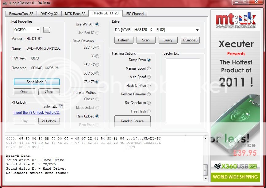 hi I managed to get my hitachi drive to see on the port properties but not in the actual drive section I did get it sorted once but ended up with blue screen which I though under win7 32 bit didn't need drivers unsigning I decided to not bother about the ck3 pro and connect the drive straight to the computer or rather the raid card