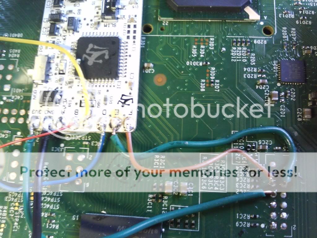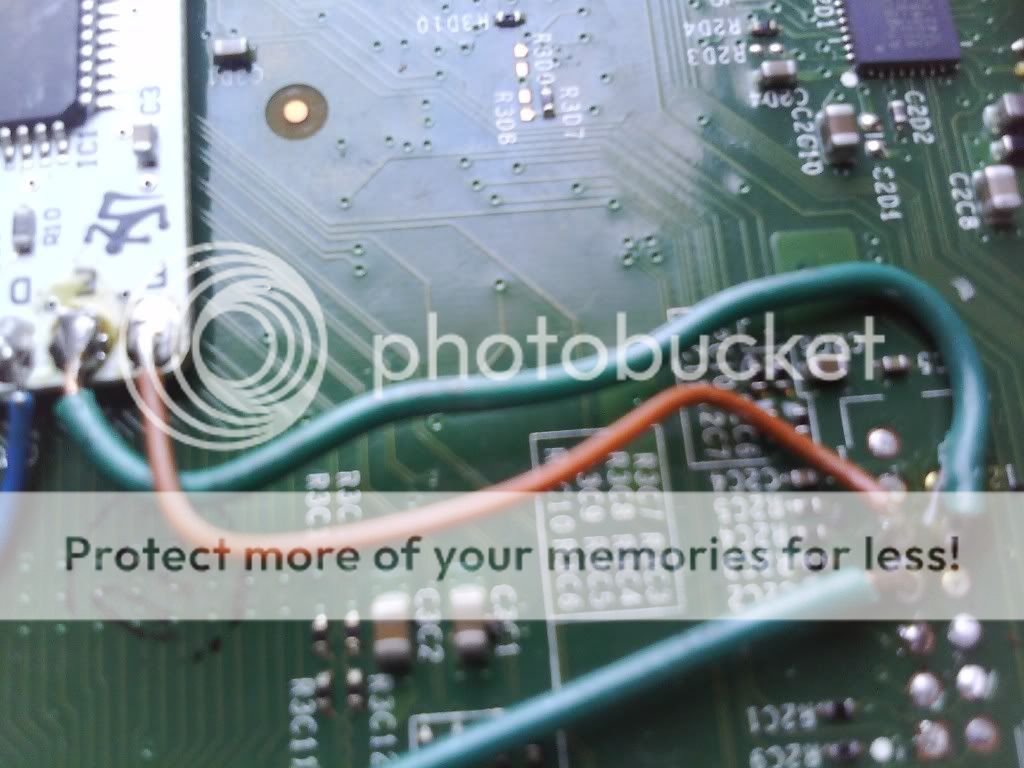 I've created the Ecc from both JTag tool and GGbuild and cant seem to get the glitcher to flash green. I've rewired everything ALOT. Doing so I managed to pull off the Orange wire pad and Yellow wire pad -. I wired in a jumper on the Orange line so that the console boots again (verified by rewritting the orig.bin) and moved the yellow to the CPU side under the heatsink. The Orange wire was moved to the bottom side to prevent any further damage.