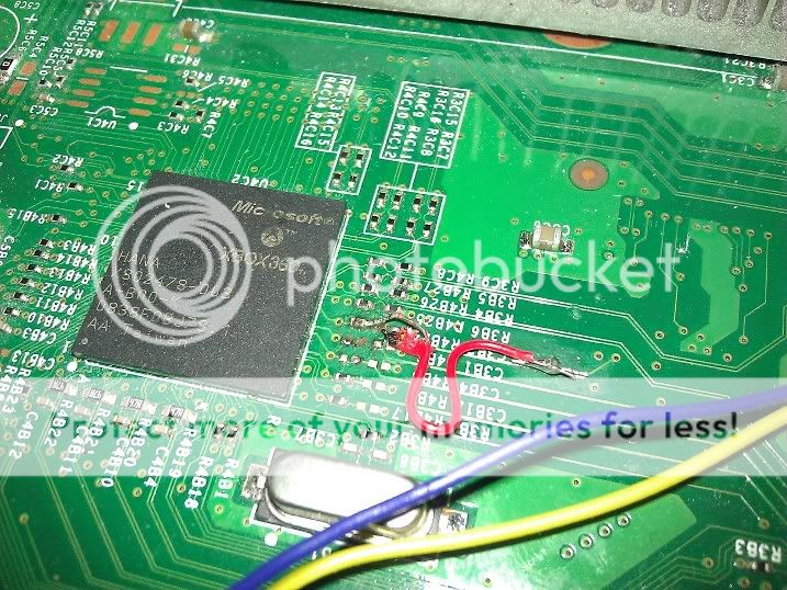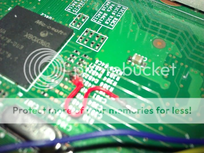 Since this the xbox has not been turning on, I cut the trace and soldered a wire to the place suggested, it still won't turn on. Also the resistors on the two rows above have come off, don't know how. Going to put this down to doing it so late as night, due to the amount of successful RGH's I have done.